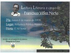 La lectura será realizada por el autor Francisco Vélez Nieto