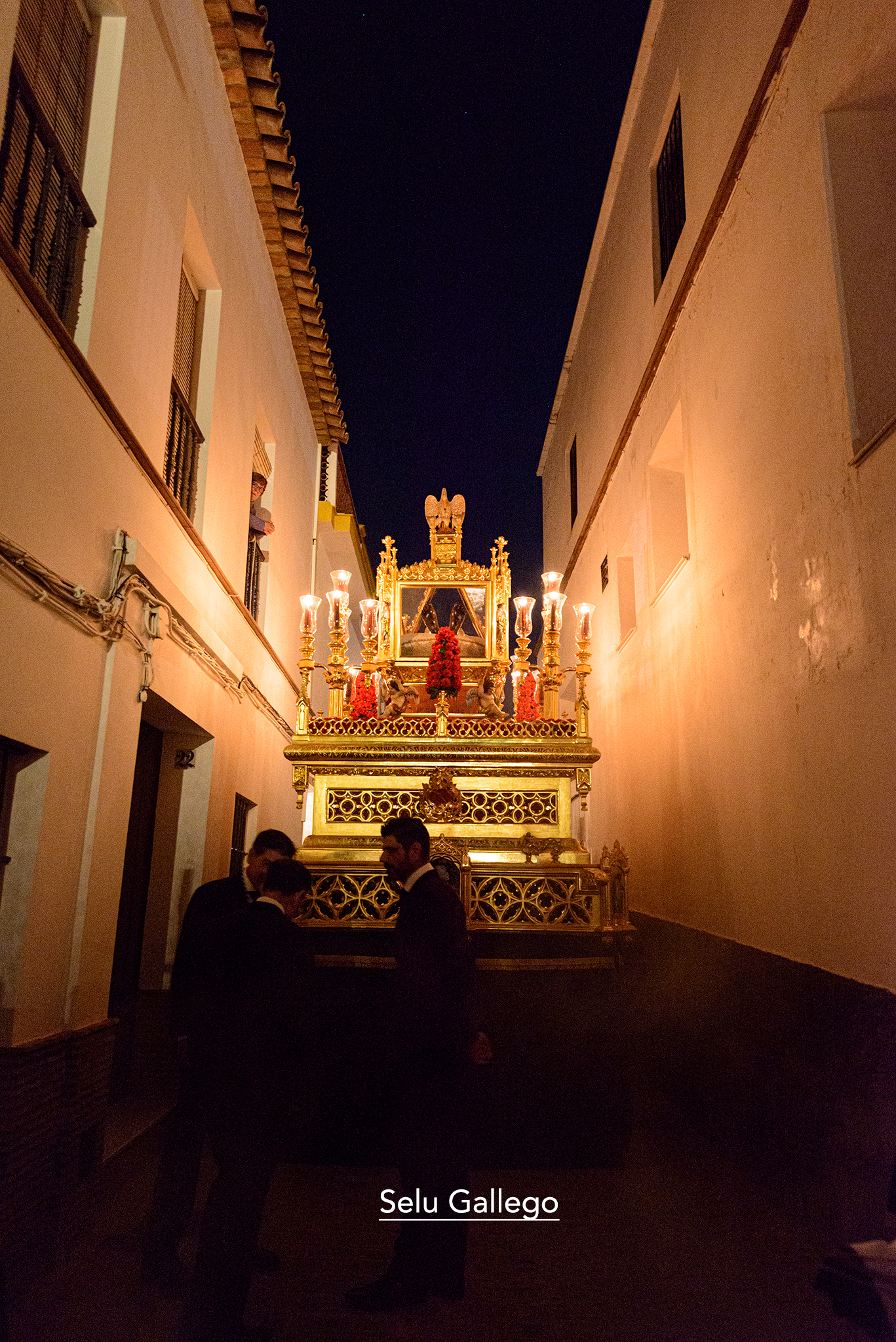 PASO: Parihuela realizada en pino realizada en 2022 por Miguel Jesús Jurado Navarro. Los cuatro hachones realizados por Manuel Hidalgo Barras.